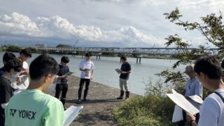私と久加先生、愛媛大学の片岡先生と小矢部川の調査に行きました。小矢部川に流れるごみについて調べるために二上橋にカメラを取り付ける予定です。もし取り付けることができたら、プログラムが自動でごみを数えてくれるようになり、作業効率が高くなるので、許可が下りることを祈ります。