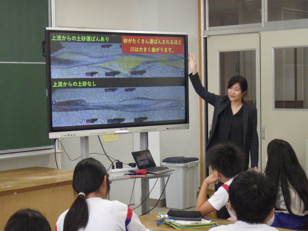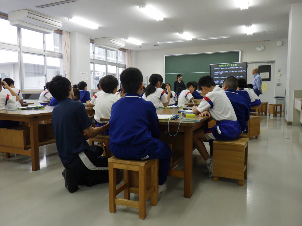 5年生3クラスを対象に、川の流れと地形形成に関する出前講義を行いました。