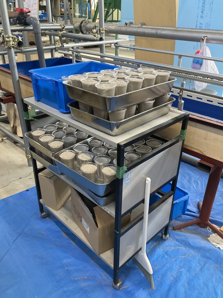↑これは失敗だね~( ゚Д゚)w … by kyuka (勝手に追記)この日からほぼ毎日に近いくらい通水してますね^^b。砂を1.6t 購入したけど,足りないので乾燥機で乾かしてフル回転..。