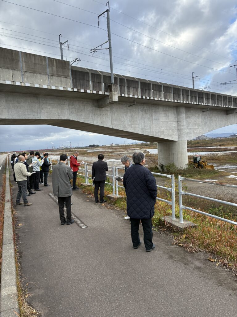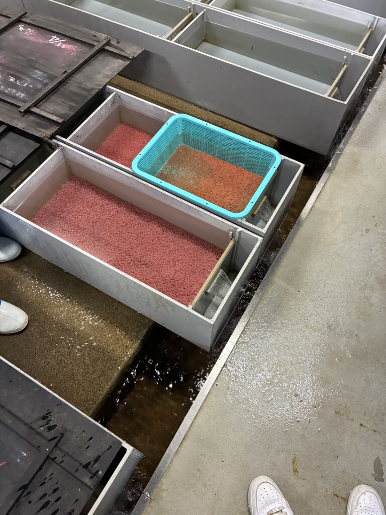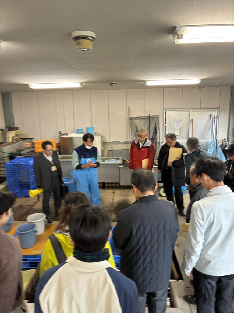 庄川の右岸を二か所見学したのちに、庄川沿岸漁業協同組合連合会施設にてサクラマスの養殖施設などを見学させていただきました。
