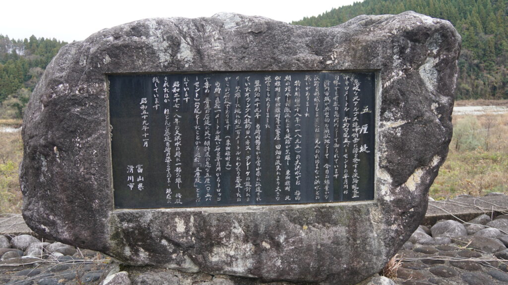 五厘堤防は石組みで作られた堤防なのですが,急流河川ならではの天端幅の広い職人業技術で,これを今作ることはできないだろうなと驚きました。